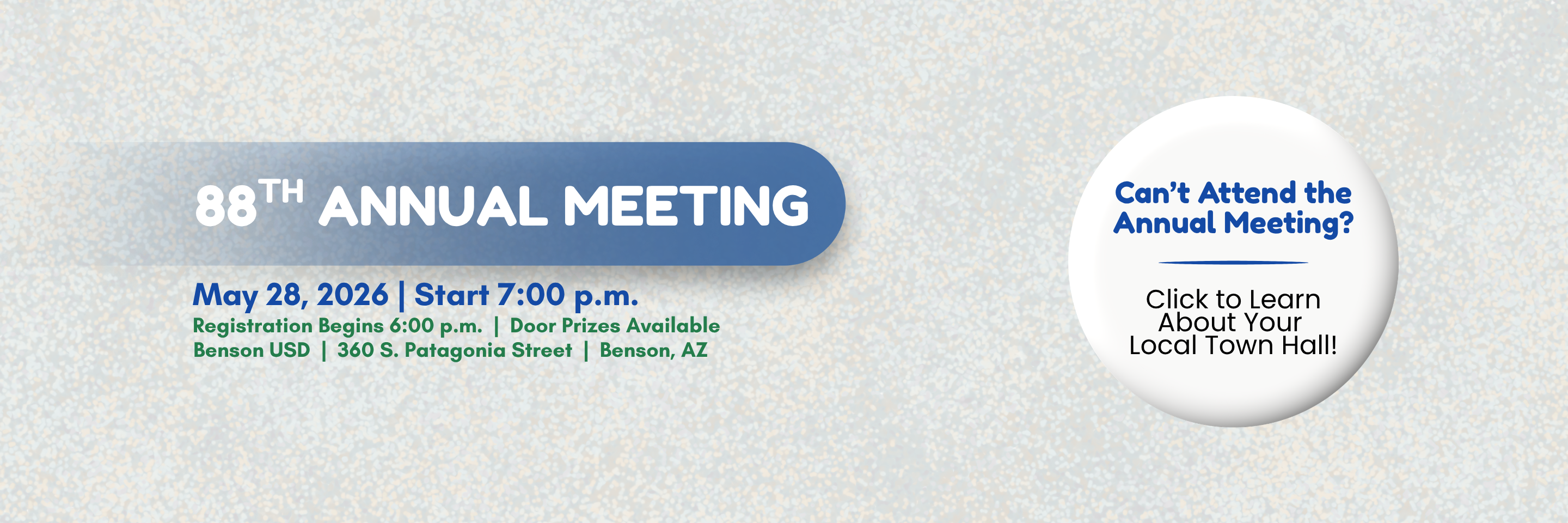 Voted 5-Star Electric Co-Op for 2019-2020, Sulphur Springs Valley Electric Cooperative, is a not for profit, member-owned distribution cooperative providing electricity to more than 60,000 services over some 4,100 miles of energized line. Located in southeastern Arizona, the cooperative’s service territory covers parts of Cochise, Graham, Pima and Santa Cruz Counties and includes the communities of Sierra Vista, Huachuca City, Patagonia, Elfrida, Benson, St. David, Bowie, San Simon, Willcox, Sonoita and Pearce-Sunsites...